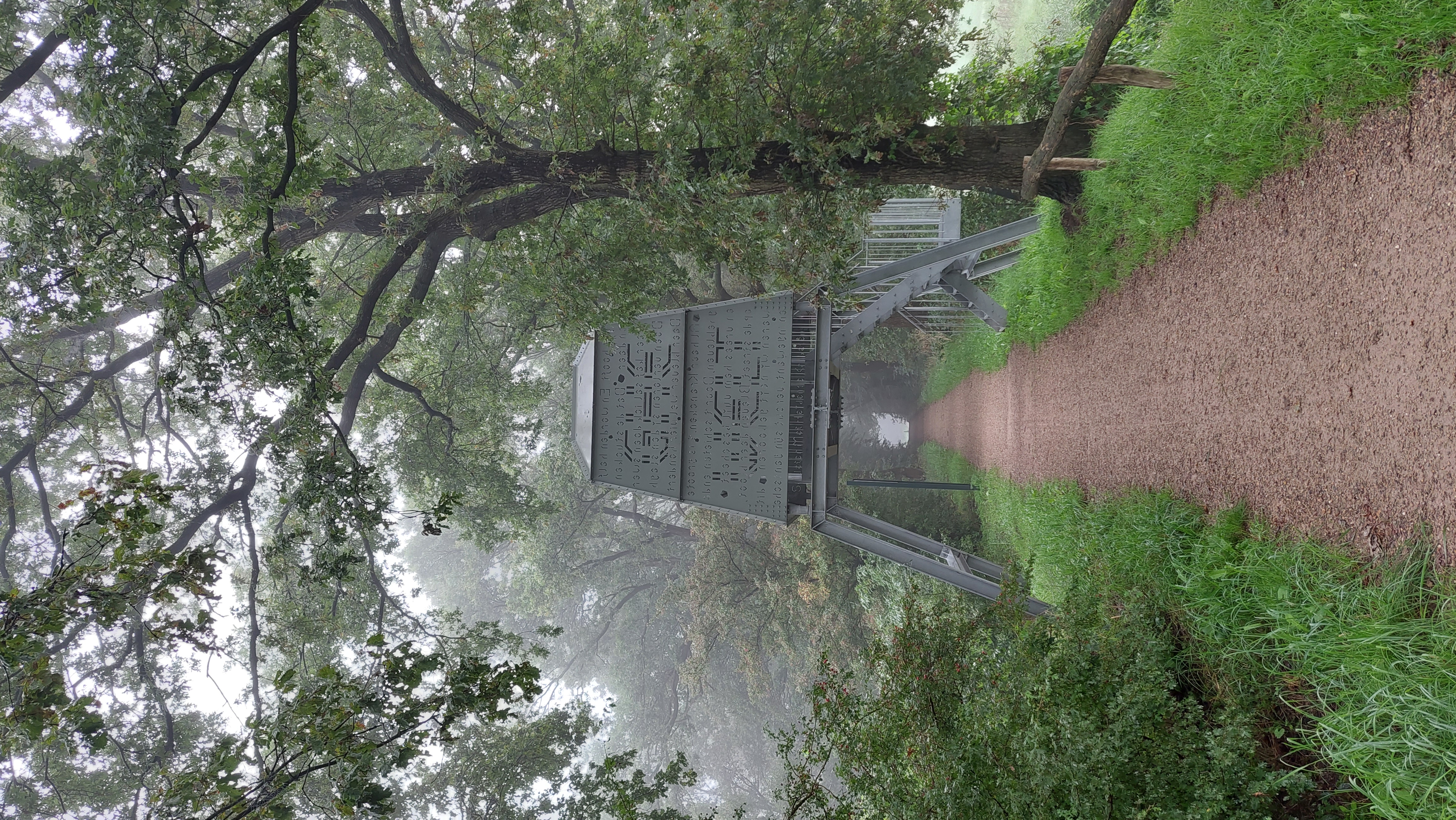 Gestart in de mist, heerlijk rustig en een zeer beperkte ervaring (zicht), de te volgen route borden rood met witte schelp.