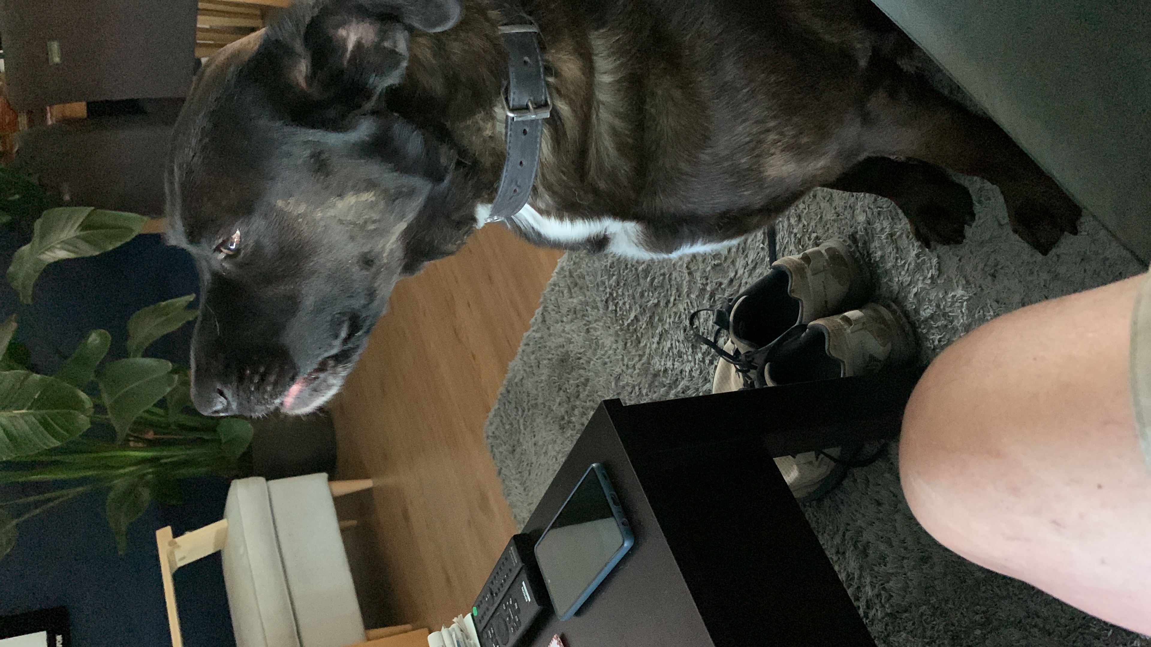 Thuisgekomen zat er inderdaad een hond te wachten die, toen ik de deur doorkwam maar niet stil kon staan, mijn hand bleef likken en bleef kwispelen en heel verbaal liet weten blij te zijn.
