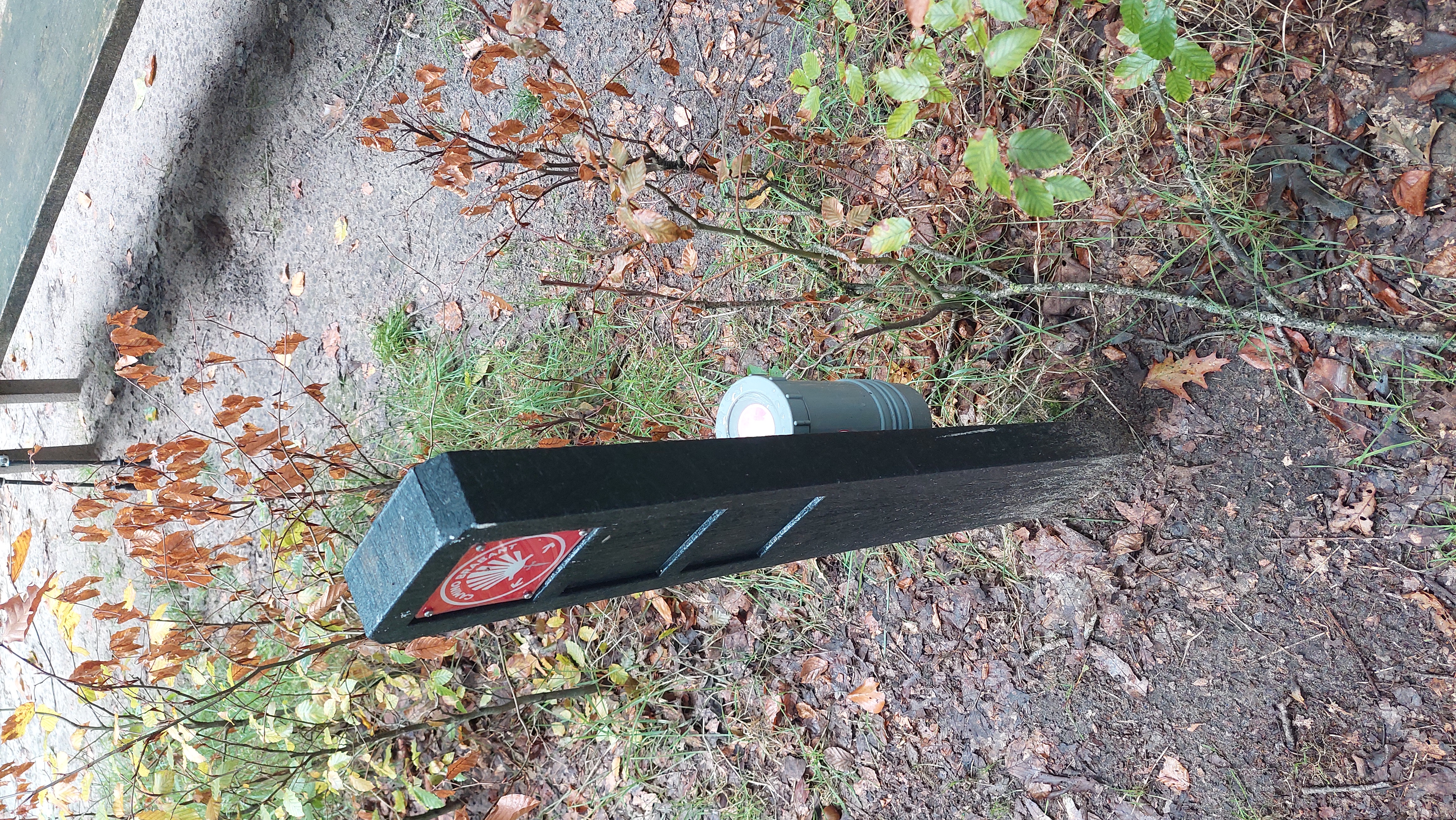 Even van het lijntje af was een Maria Kapel met Camino paal waarachter de stempel zit in een waterdichte (min of meer) pvc buis.