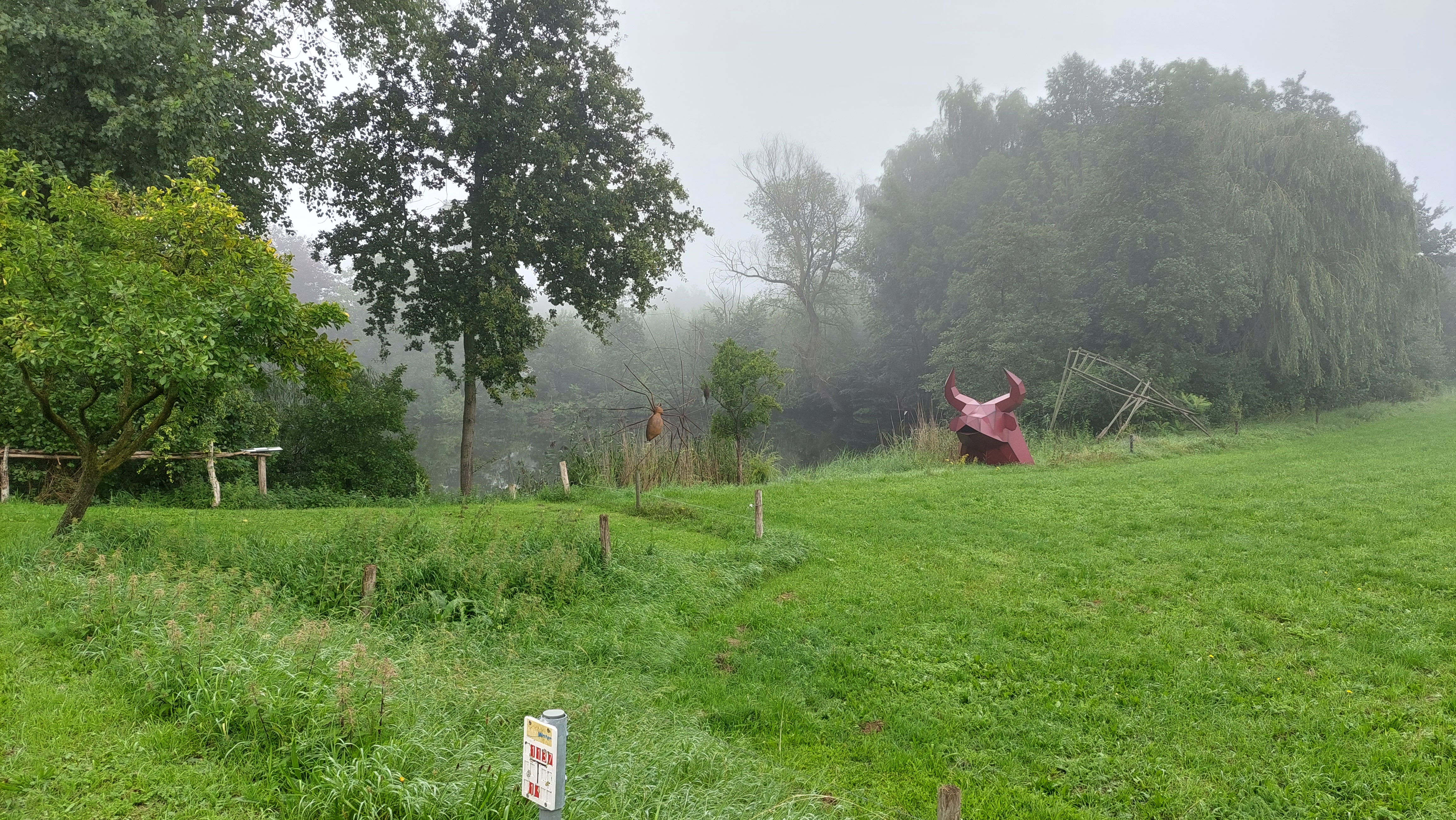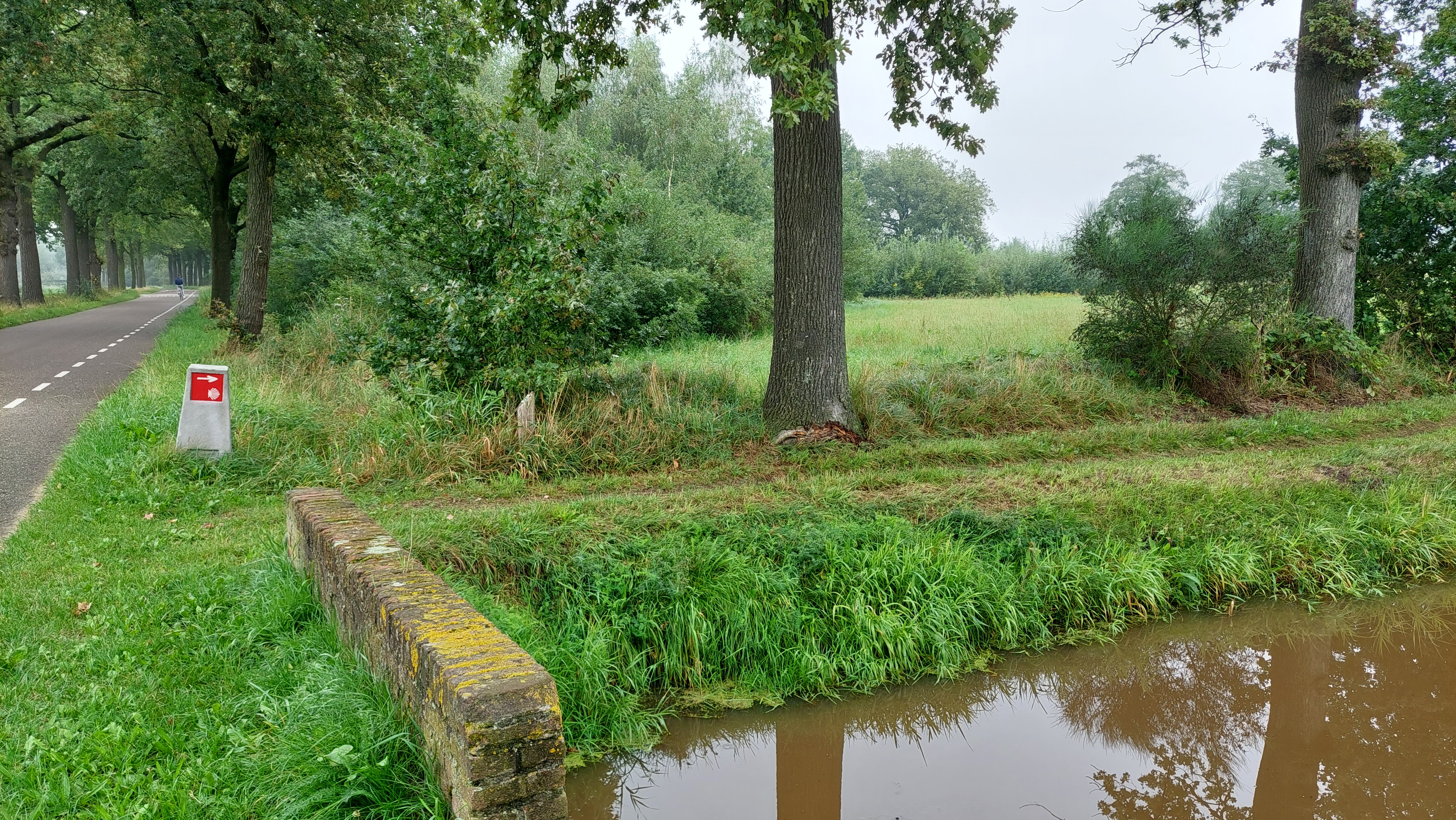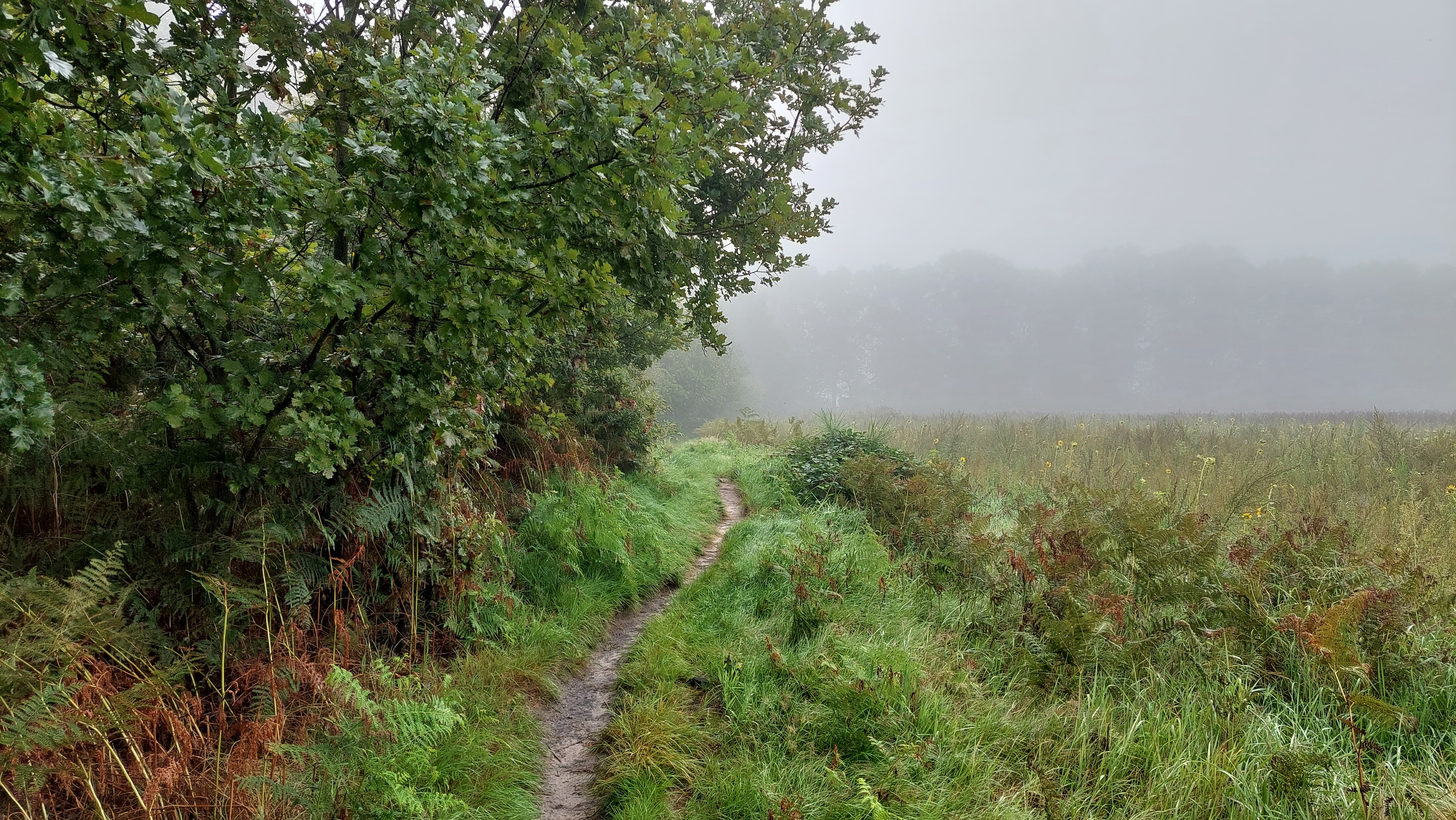 Gestart in de mist, heerlijk rustig en een zeer beperkte ervaring (zicht), de te volgen route borden rood met witte schelp.