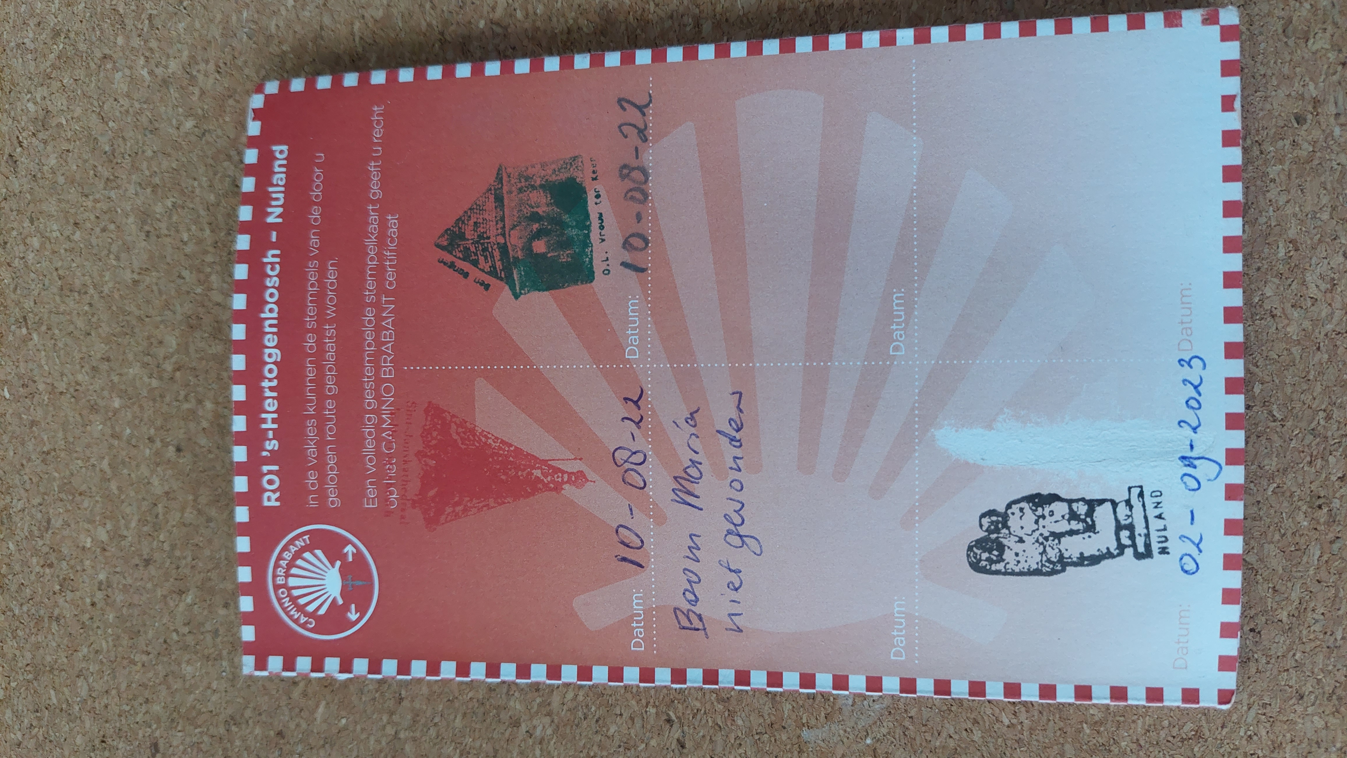 De bedoeling bij de Camino Brabant is de route lopen en onderweg stempels verzamelen in (meestal) Maria kapelletjes.