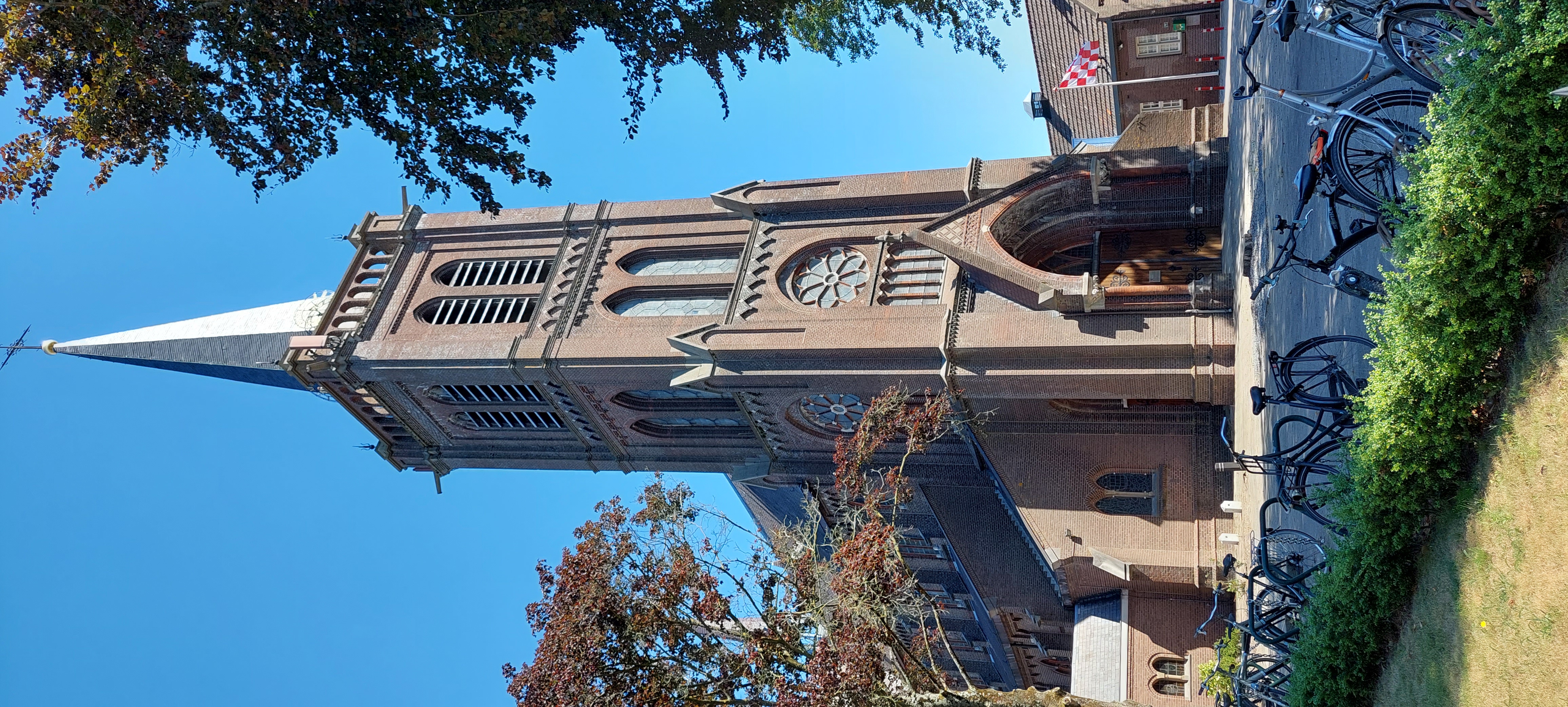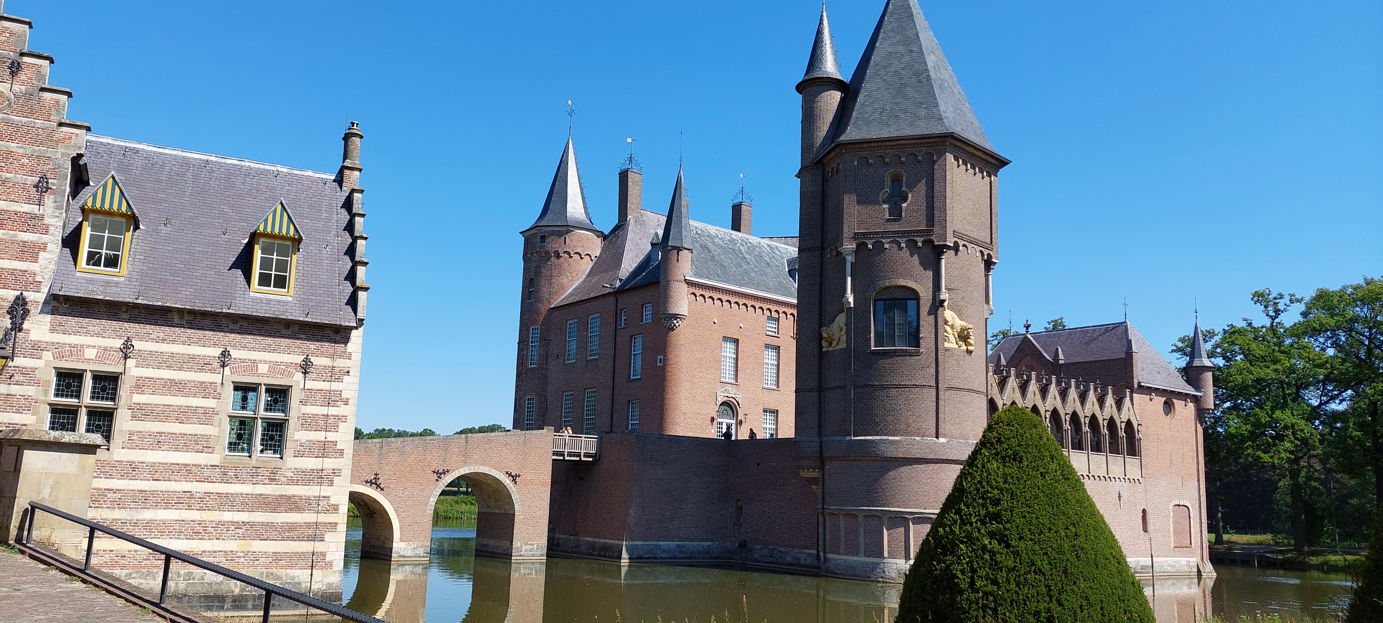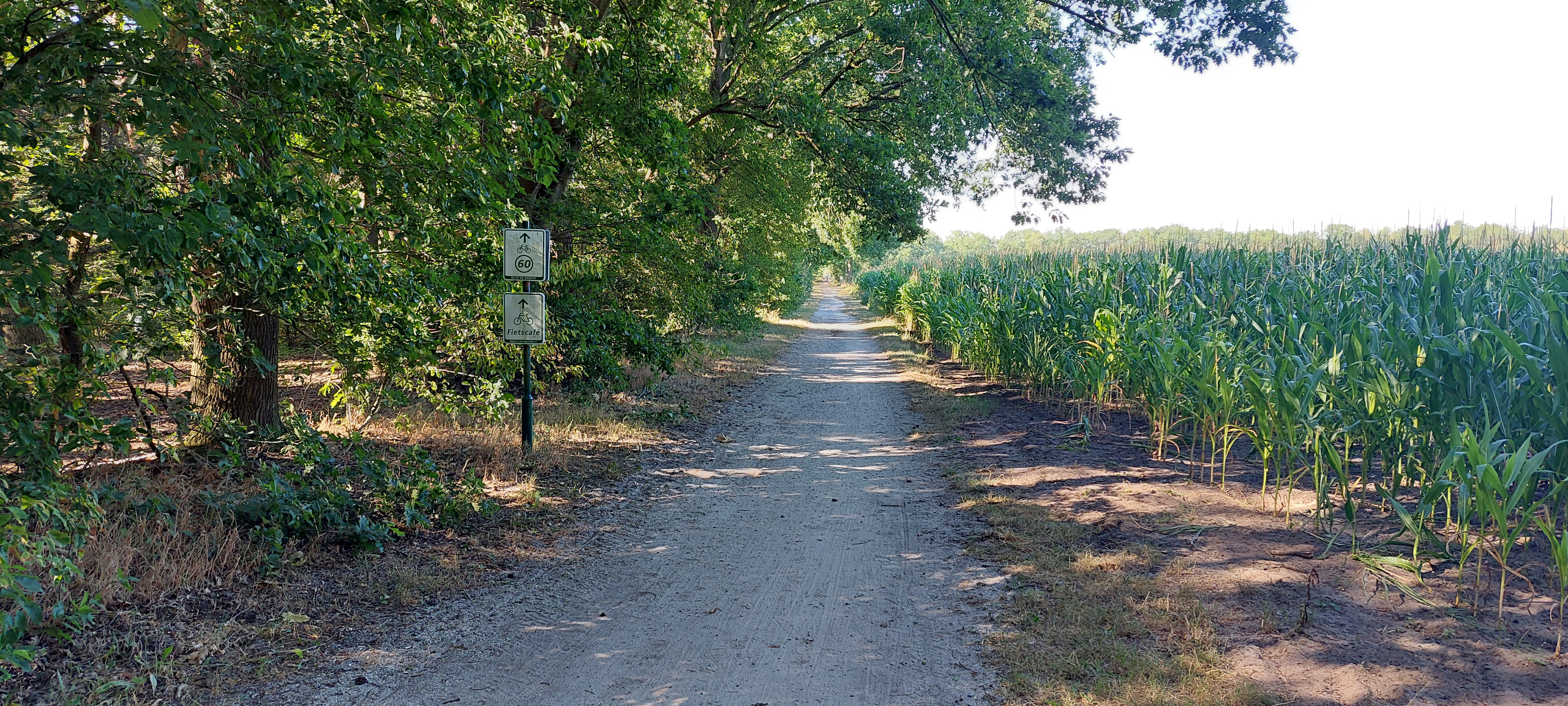 Veel door het boerenlandschap met toch ook we schaduw en volop in de zon (30 graden) langs kasteel Heeswijk, de kerk van Heeswijk en de kerk van Dinther (in de verte)