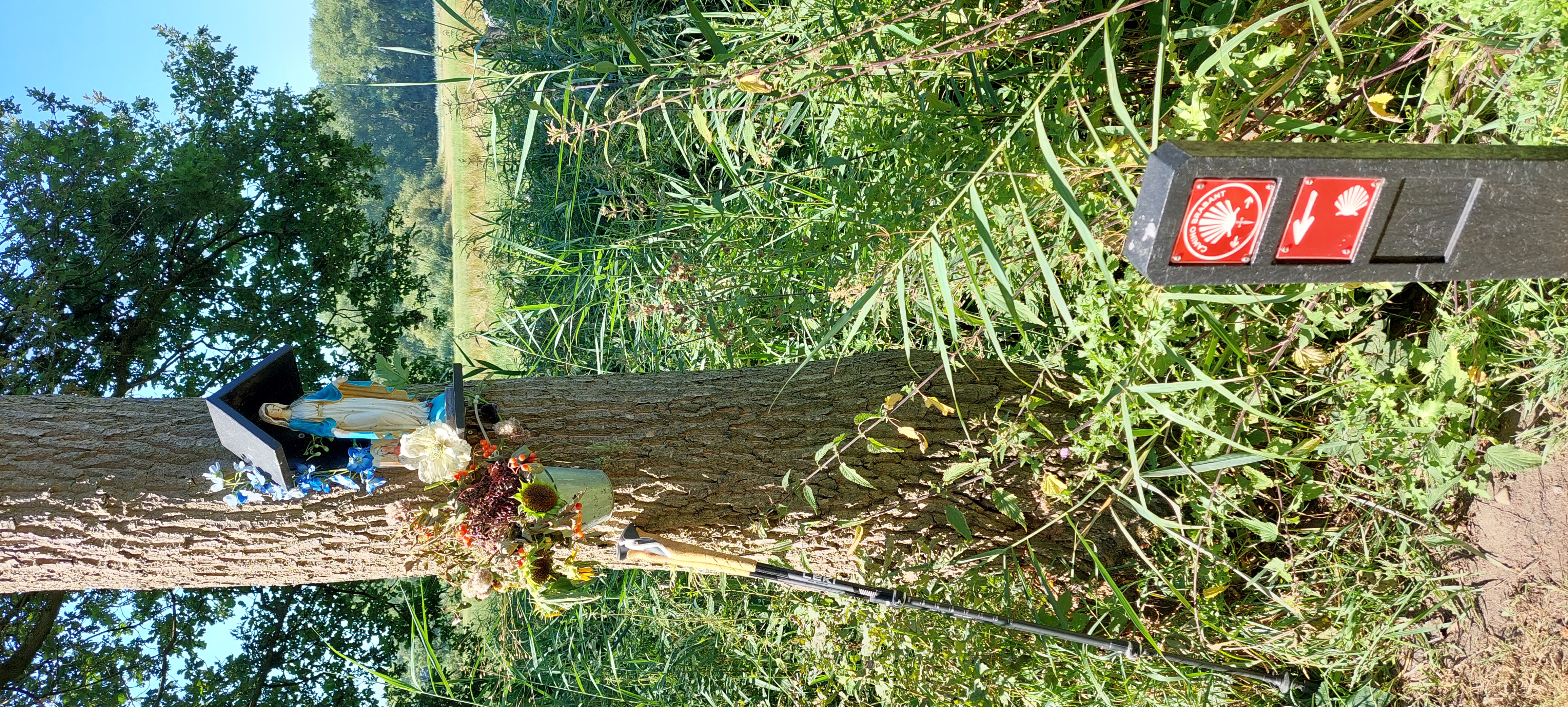Er was zelfs een bos Maria oftewel een Maria beeld aan een boom in t bos (ook een stempel voor de kaart) helemaal langs gelopen natuurlijk, weer terug en door ...