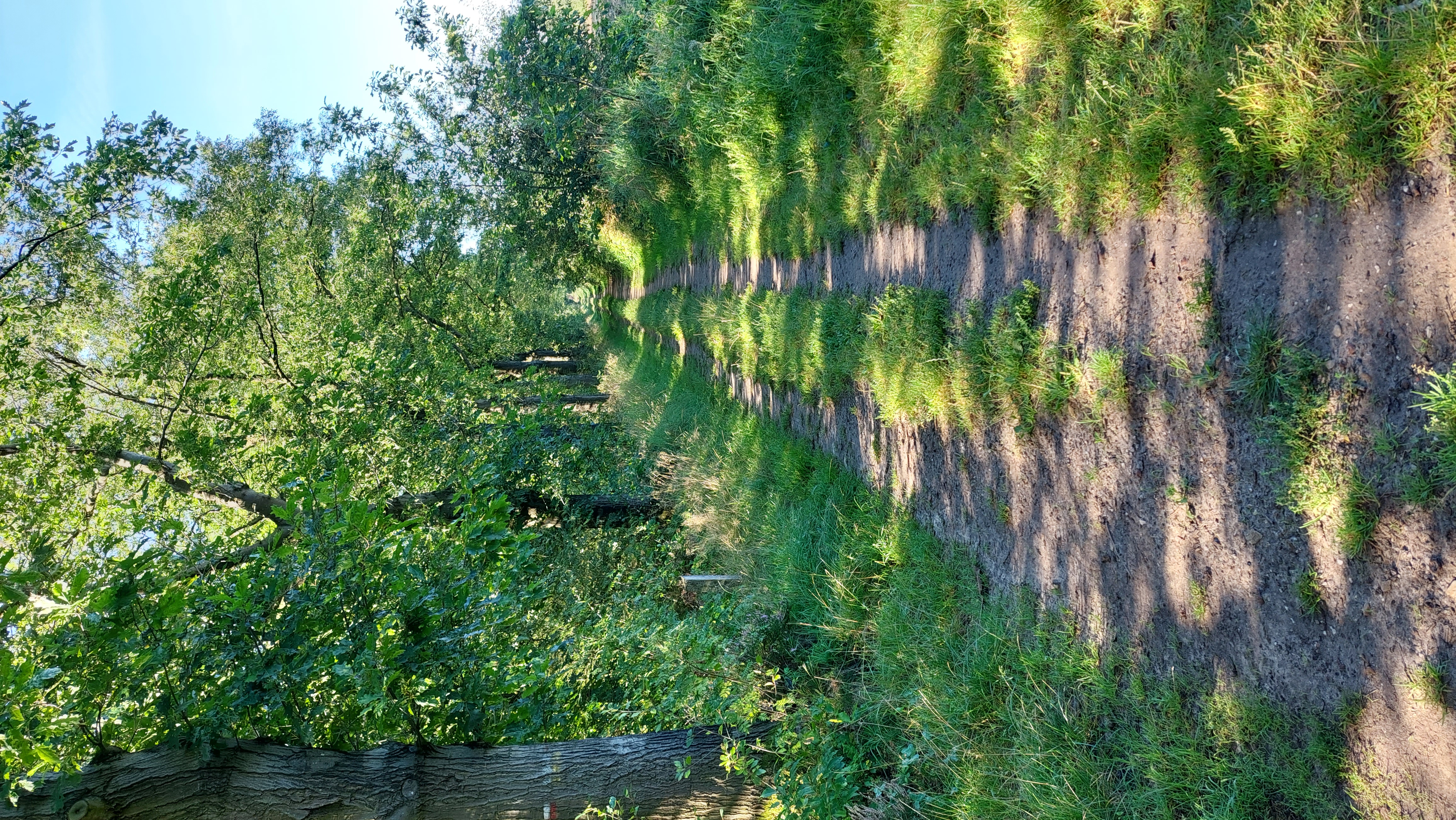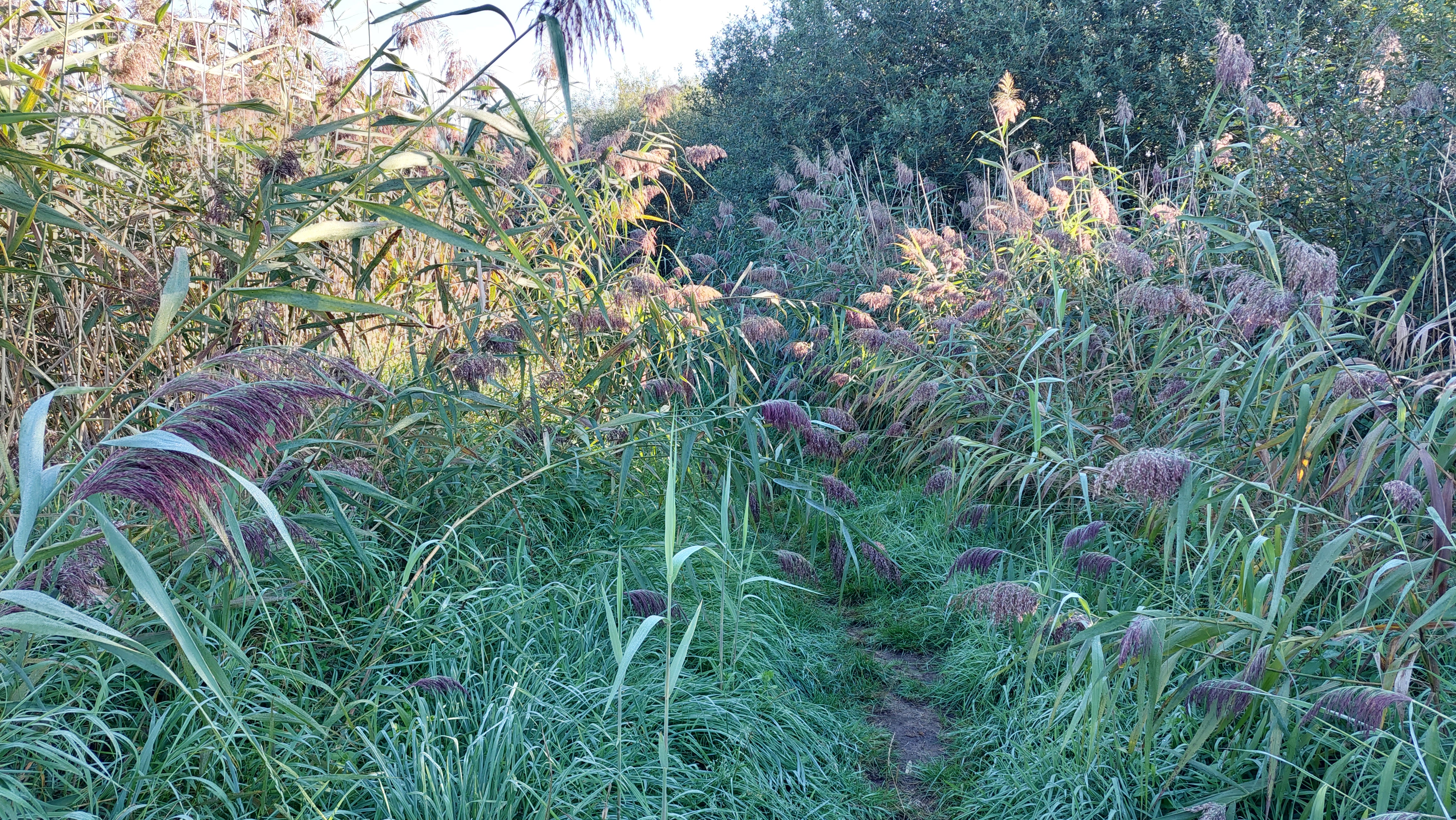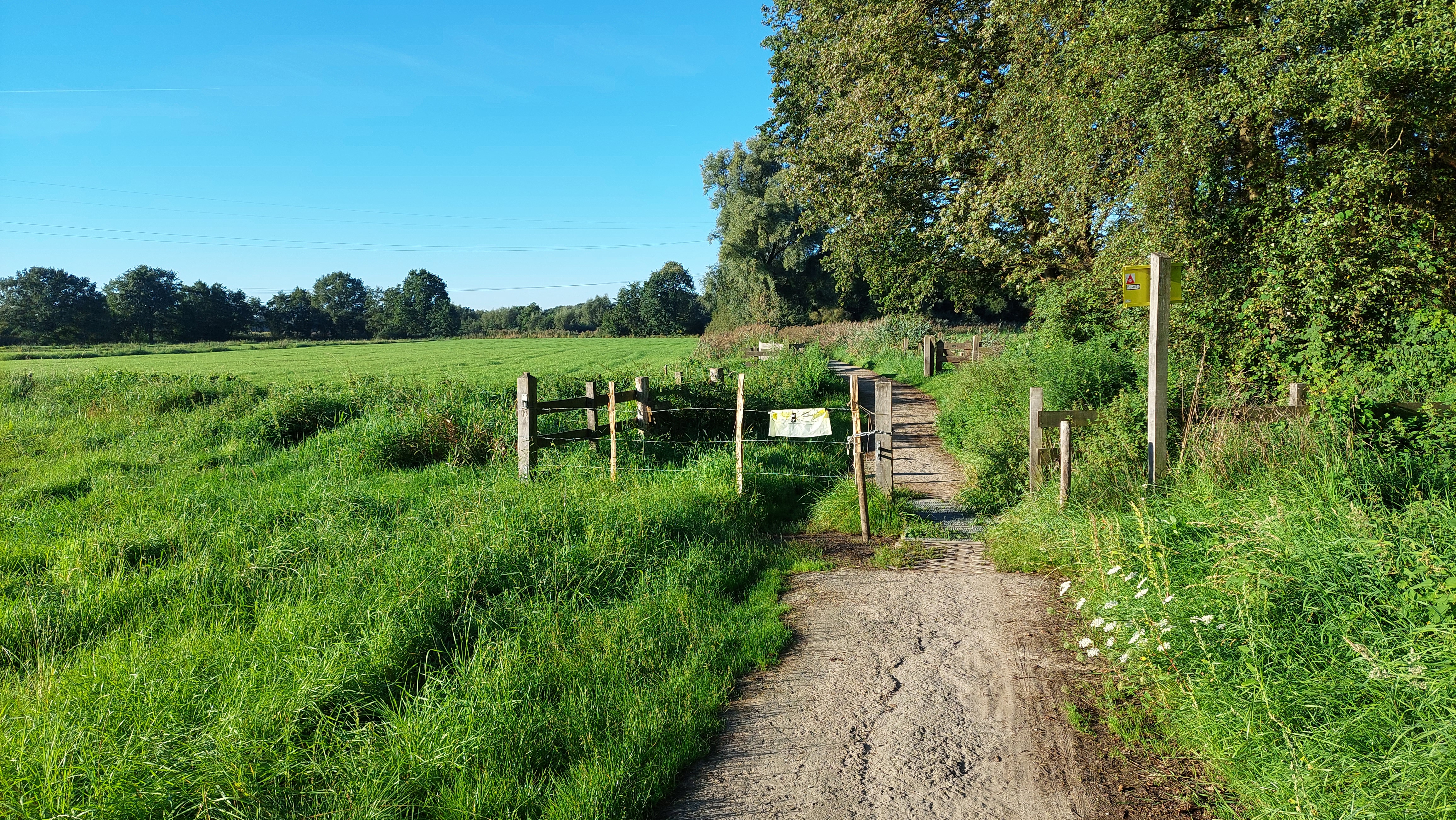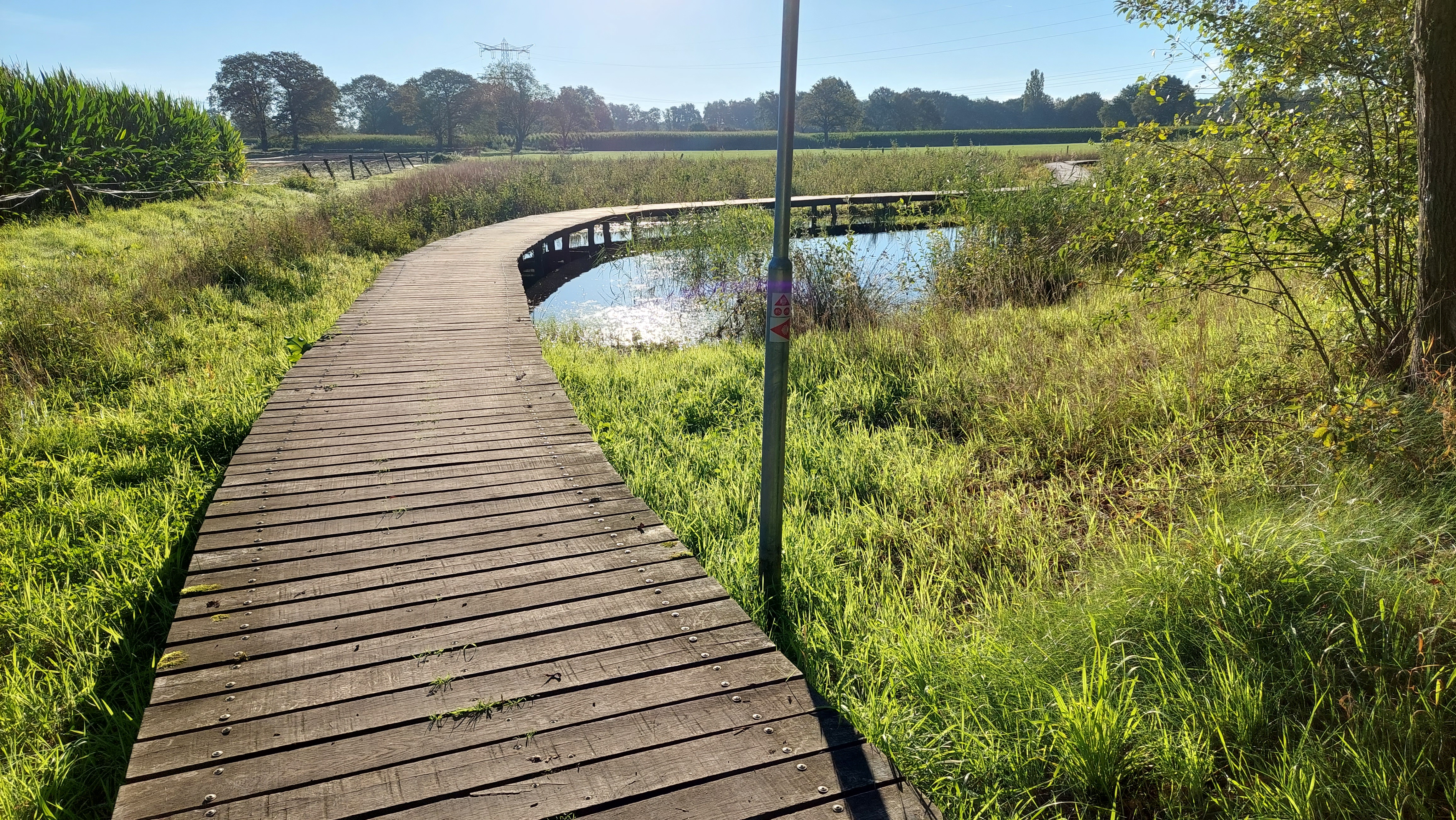 Eenmaal buiten de stad begint het Dommeldal, prachtig gebied, met weer een nieuwe versie van een struinpad nu volledig overdekt met riet.