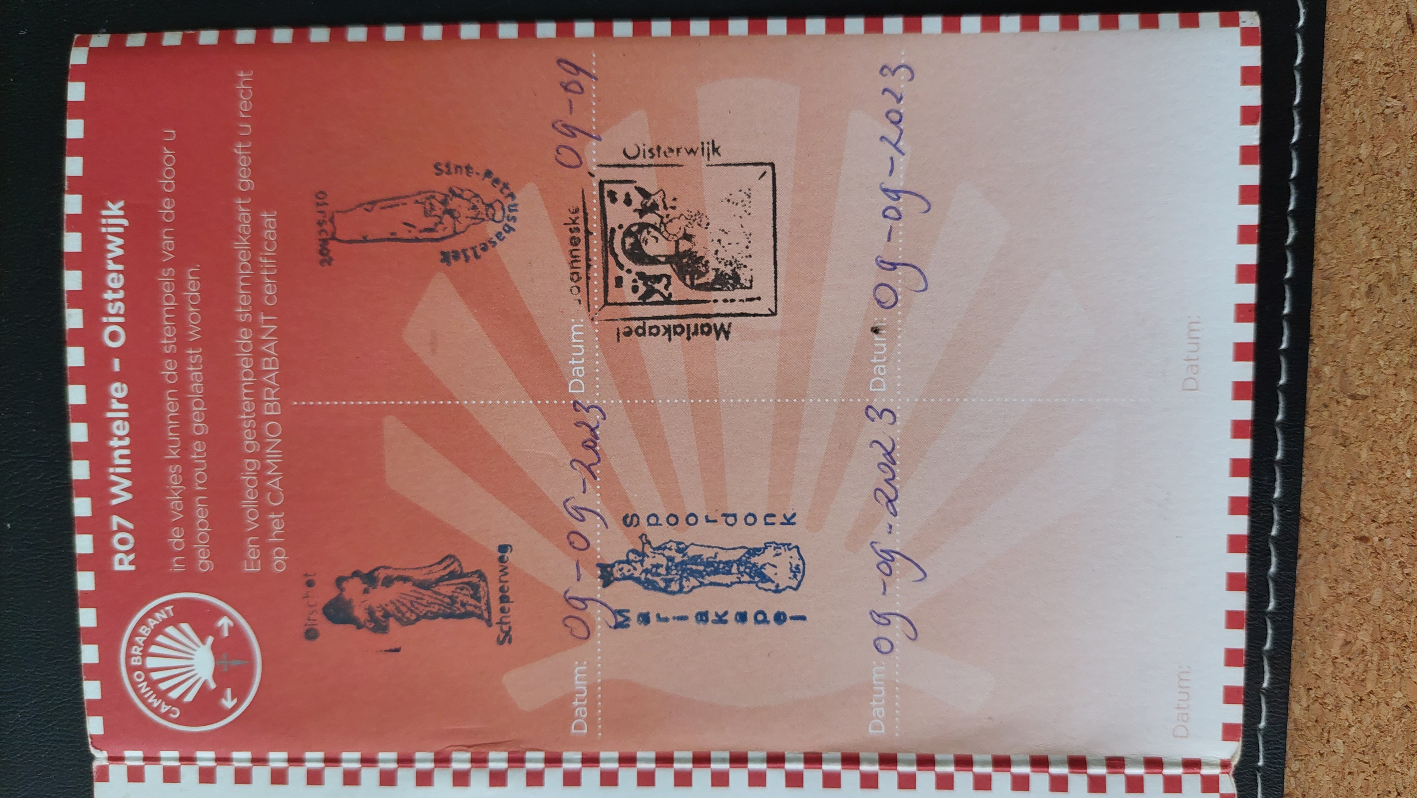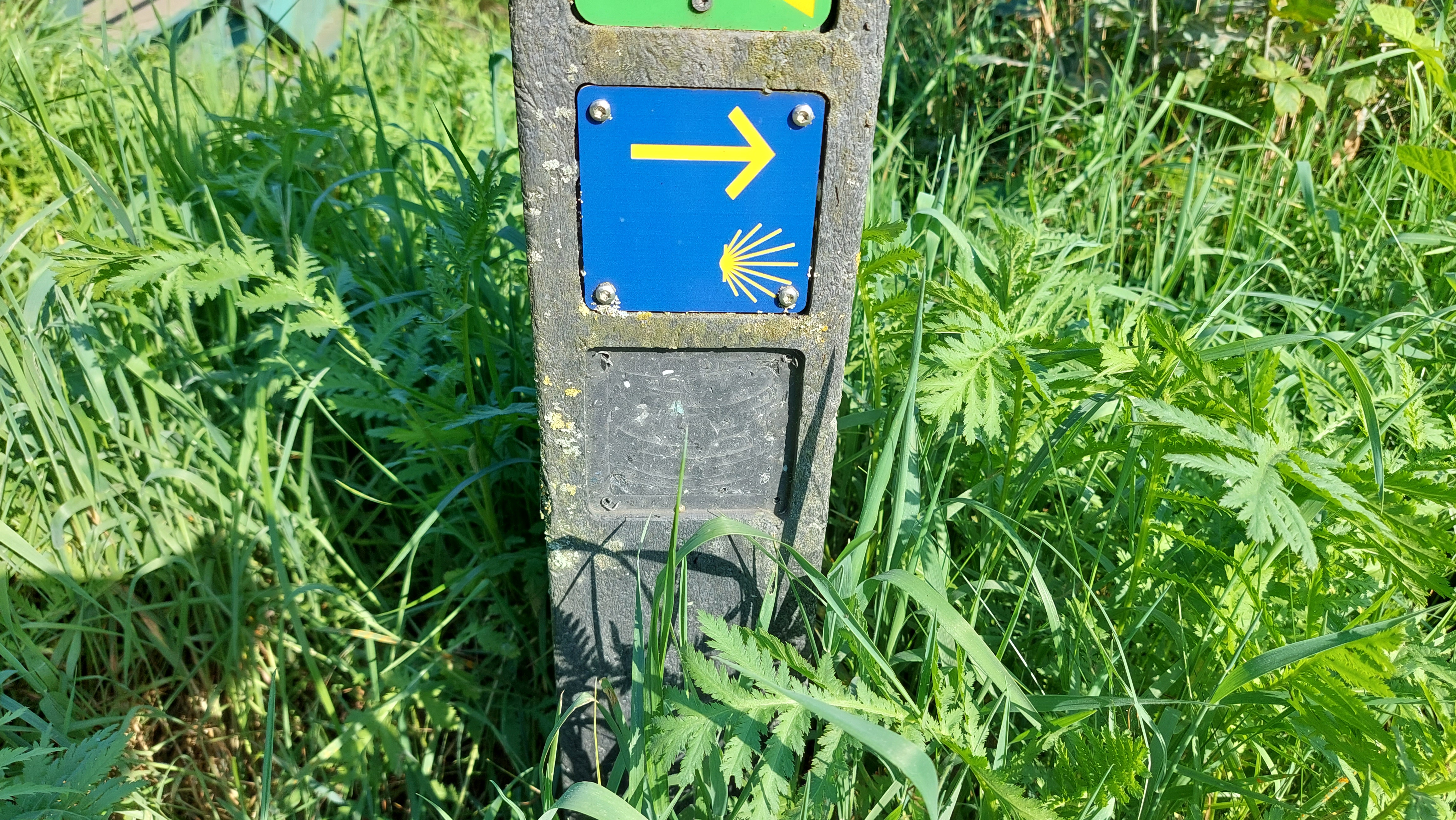Ineens dacht ik hé Camino Brabant bordjes zijn toch rood, een blauwe met gele schelp die is van de "echte" Camino naar Santiago de Compastello (en ik heb het opgezocht ze kruisen elkaar in Brabant) gaaf he !!