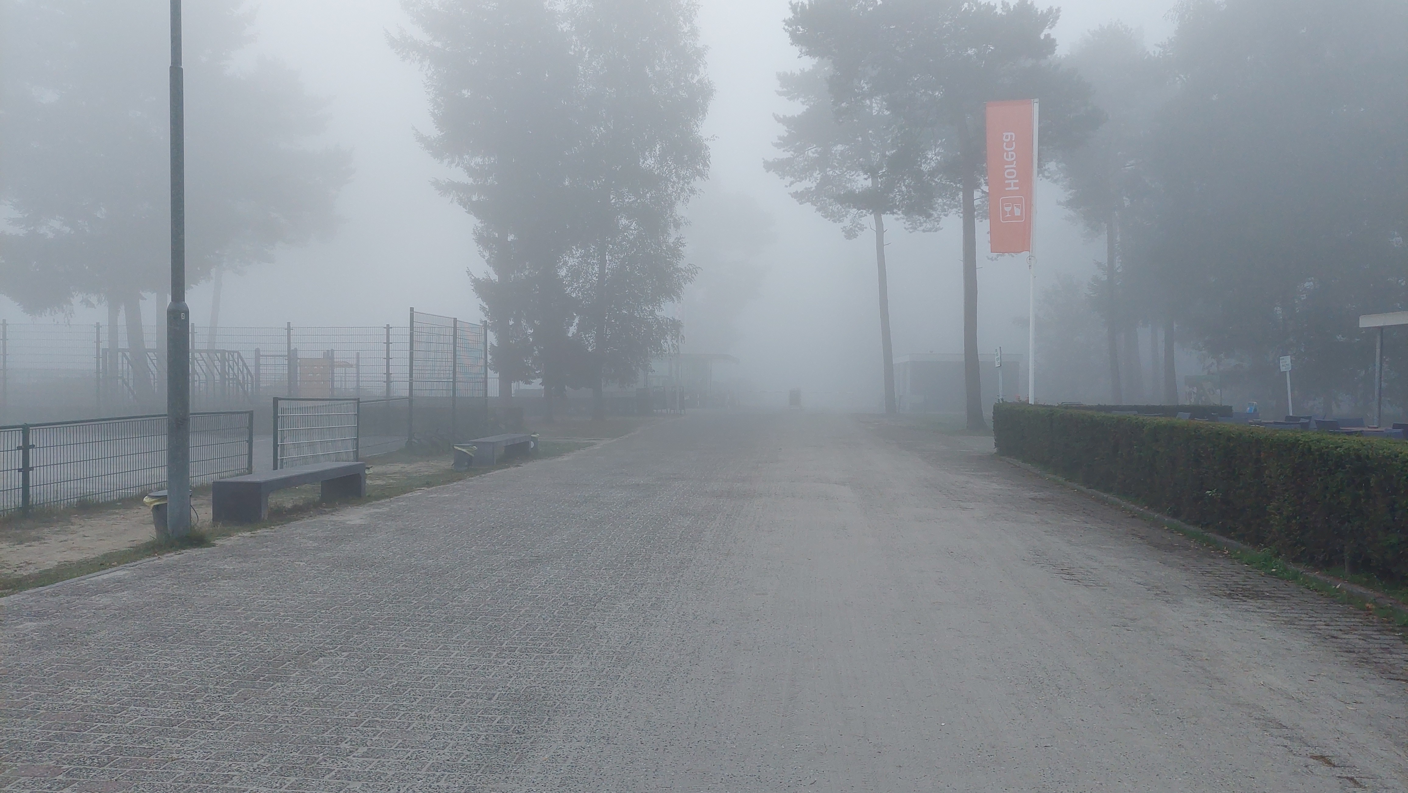 Zo zag de camping in ruste eruit, buiten de camping overal mist erg mooi en rustig.