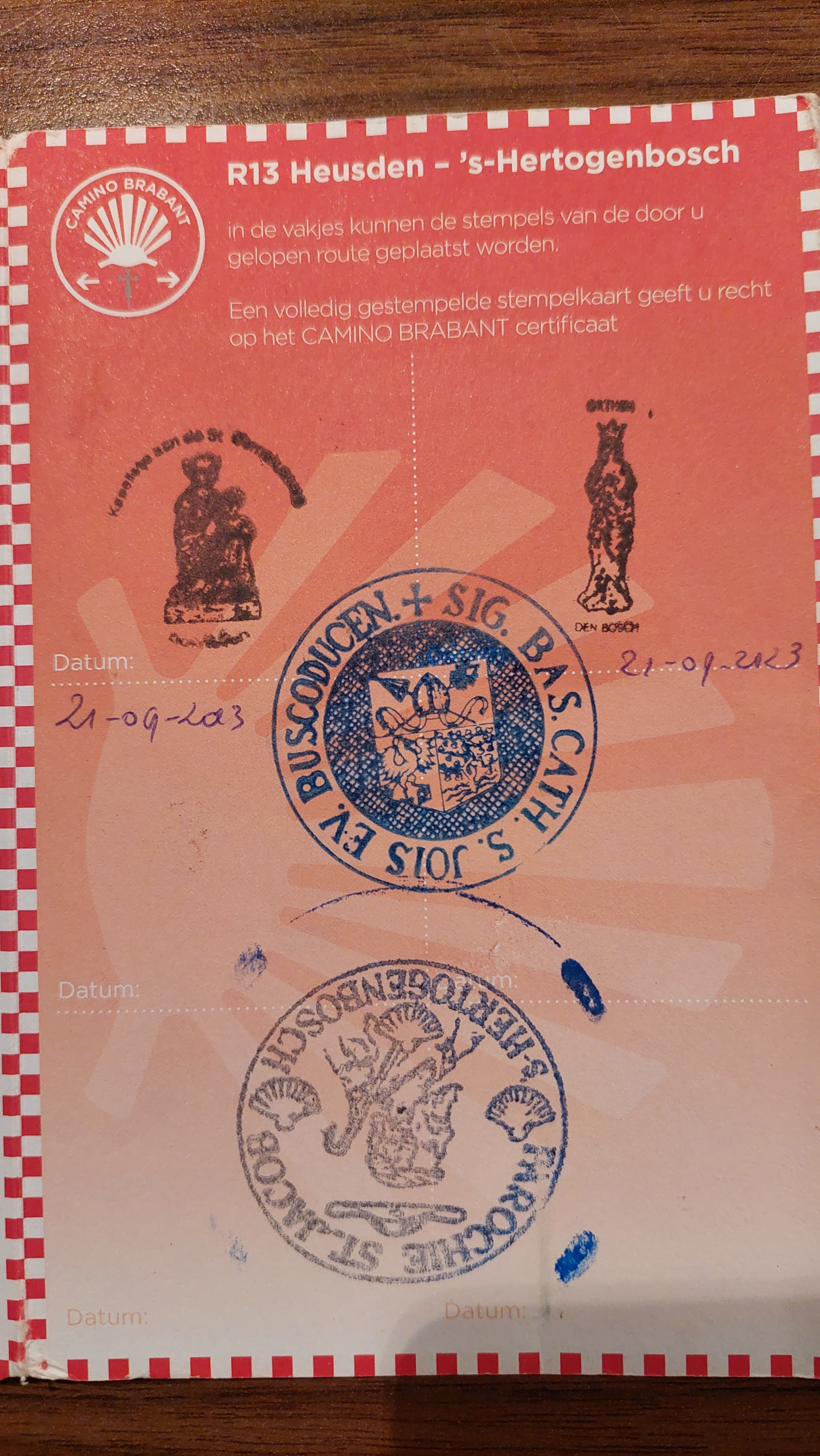 Maar goed ik had het leuk gevonden als er in de Sint Jan een certificaat zou liggen voor de pelgrims die de routes hebben gelopen. Bij de Camino gaat dat via 1 van de mensen van het bestuur. Je maakt foto's van de stempels aan de voor en achterkant van de stempelkaart en verstuurd dit via e-mail.