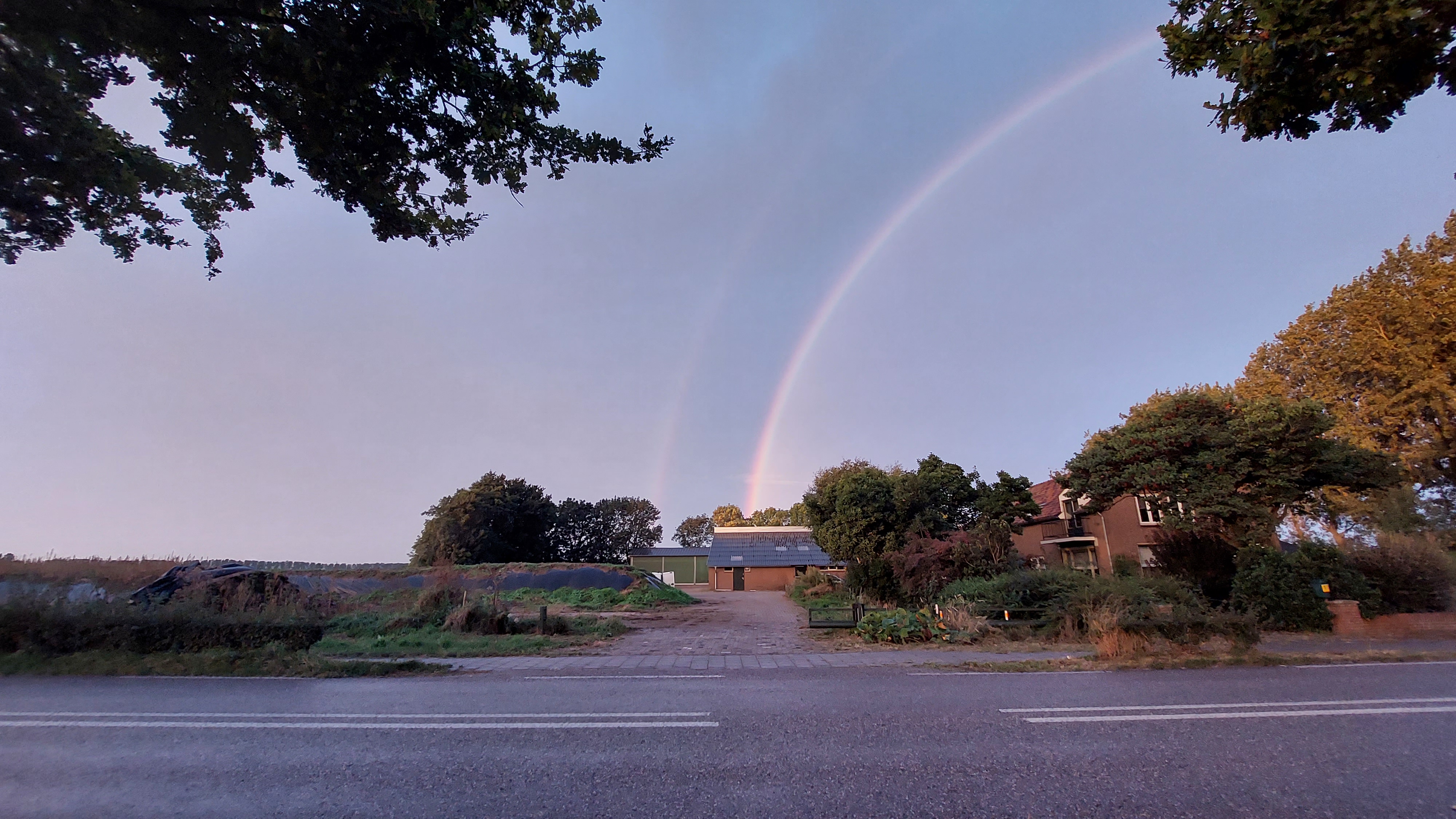 Bij regen en zon tegelijkertijd krijg je een mooie dubbele regenboog.