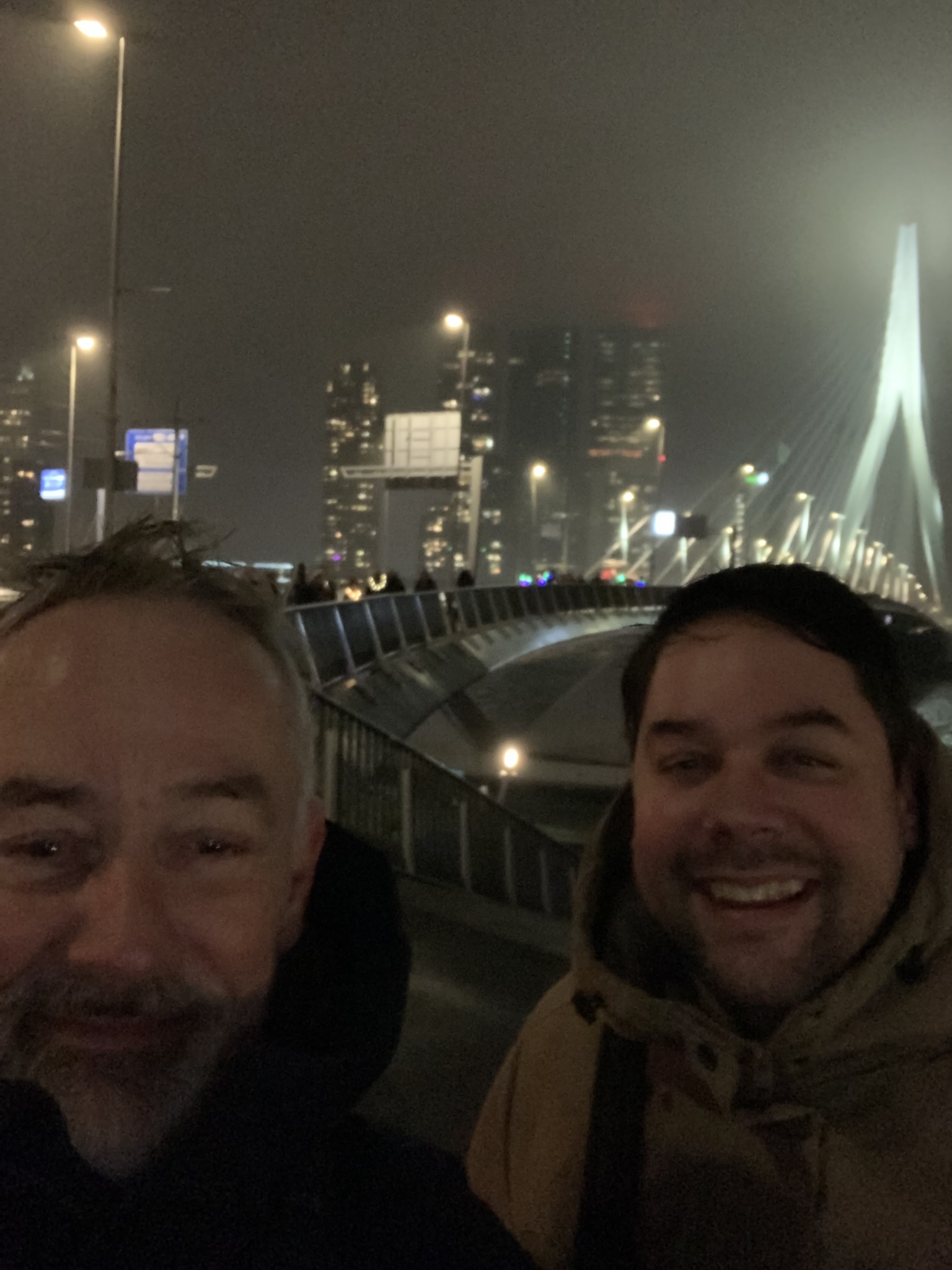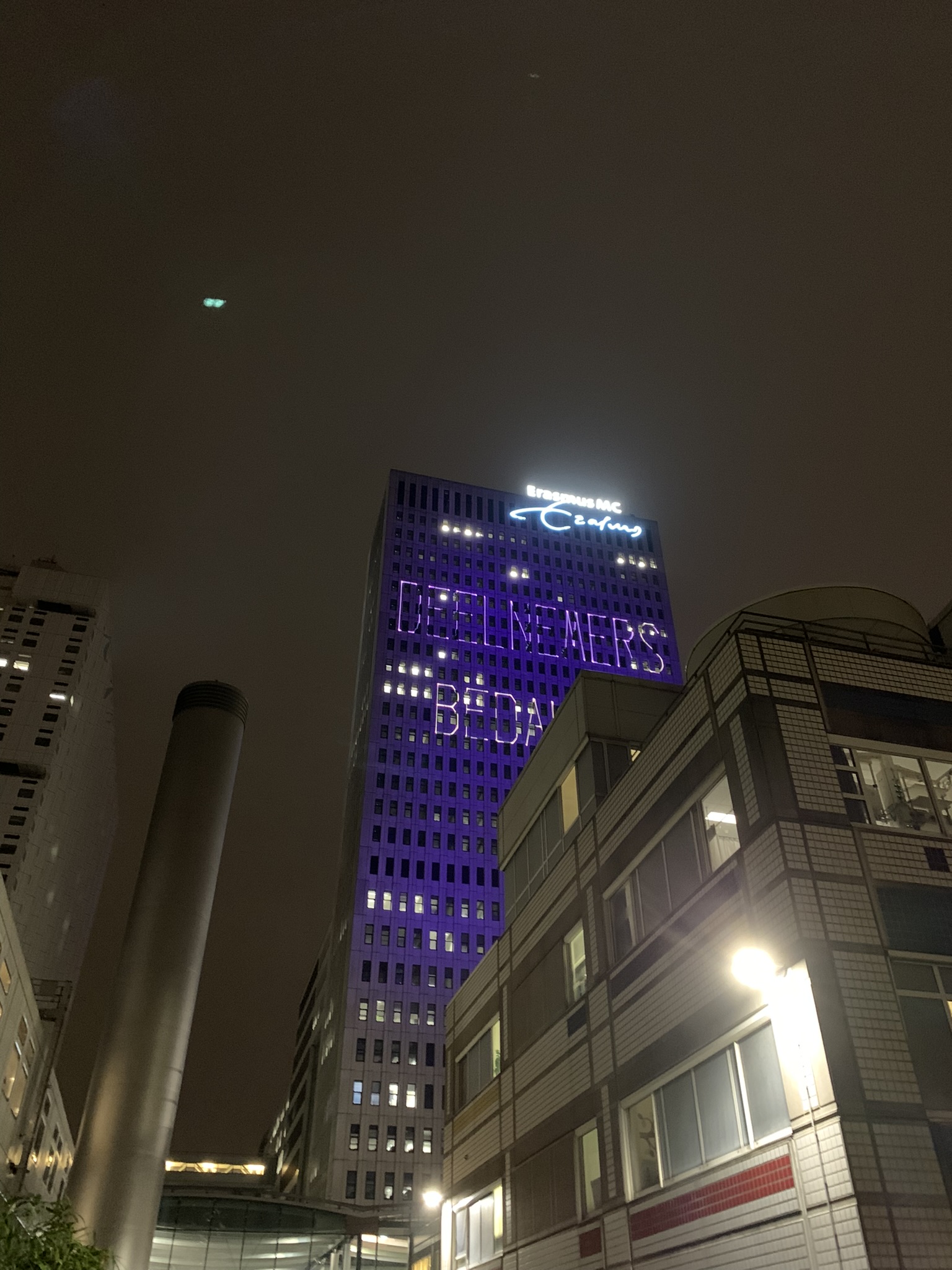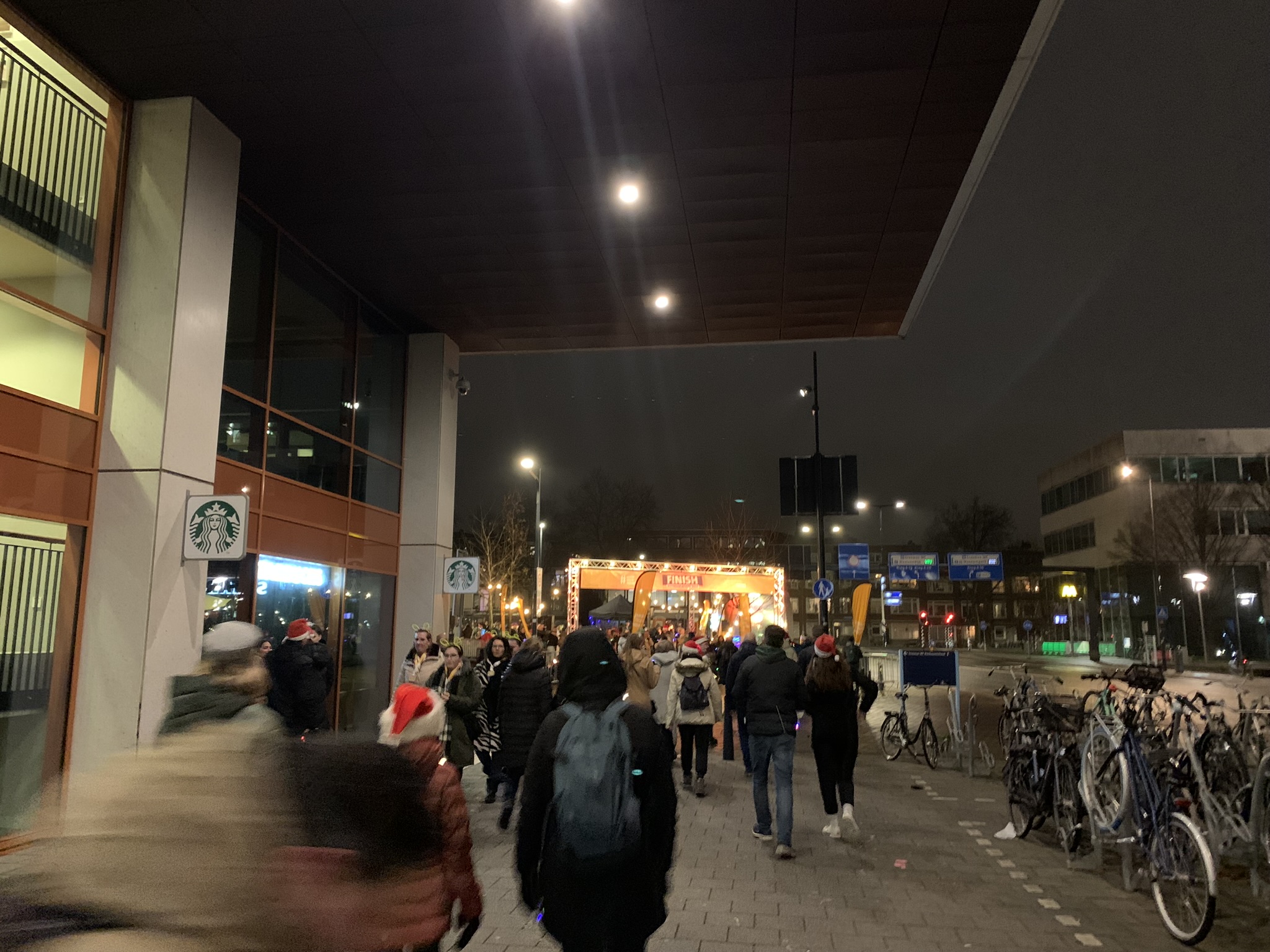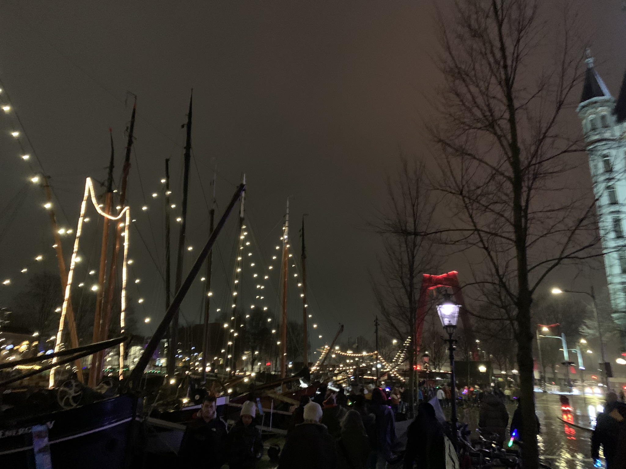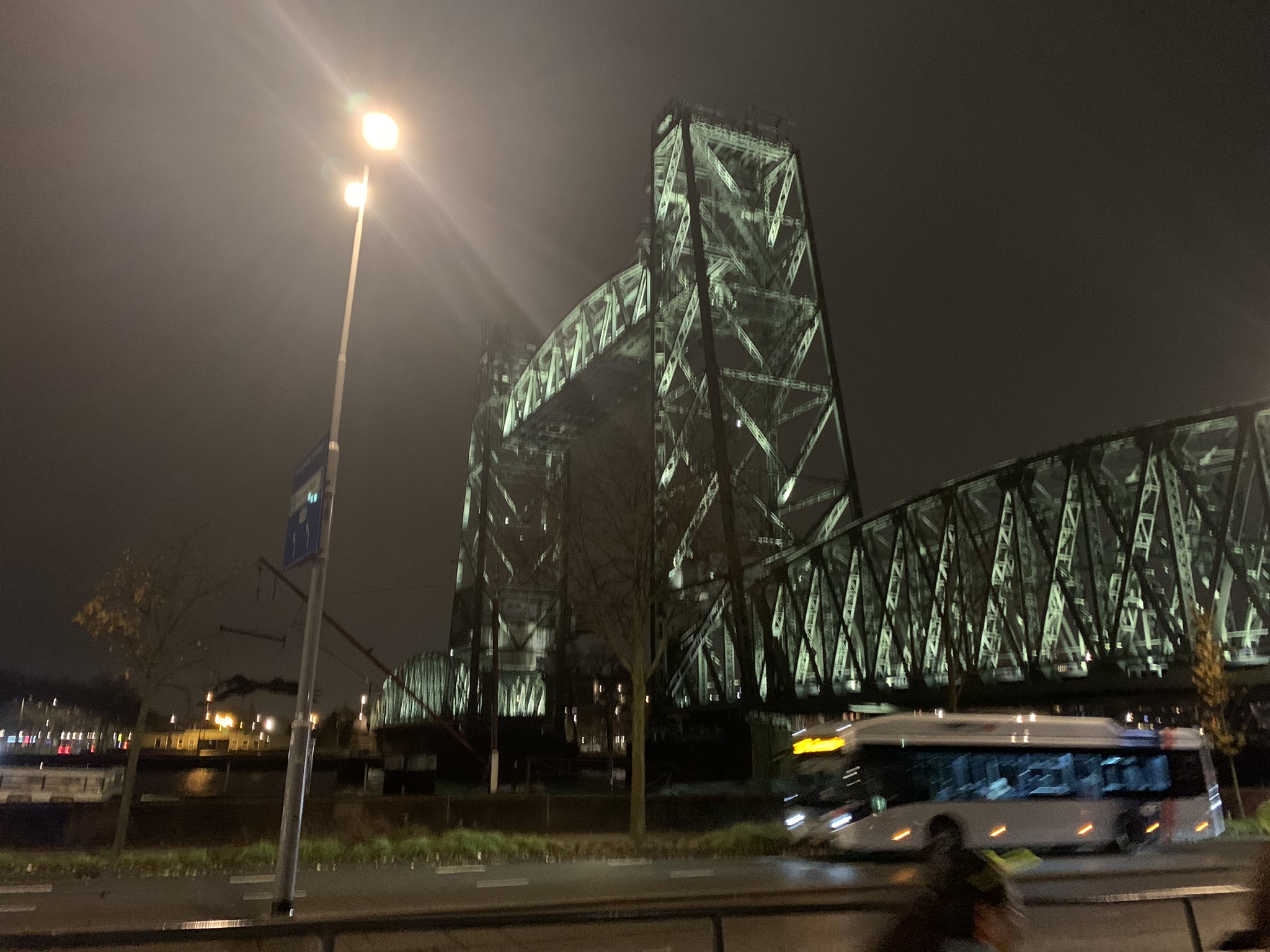 Veel verlichte gebouwen onderweg en via de Zwaan weer terug naar Erasmus.